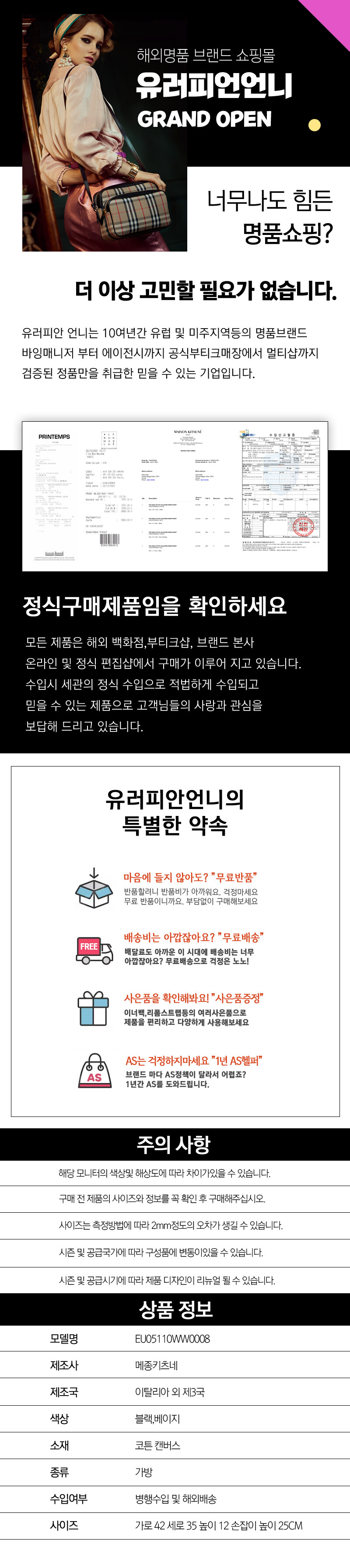 - 해외배송의 경우 매장에 재고가 없을시 몇일 간격으로 계속 바잉이 계속 시도되며 물건 바잉이 지연될수 있습니다.